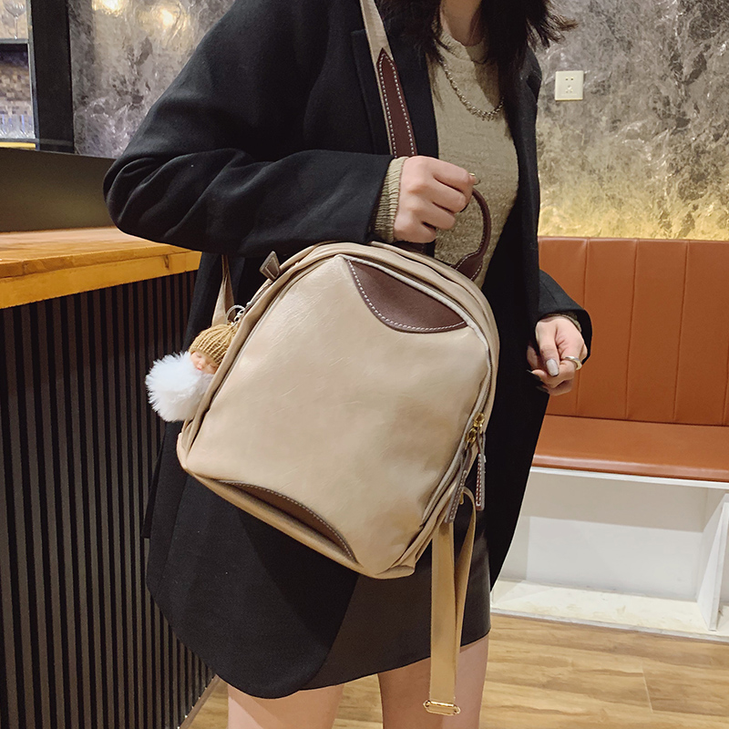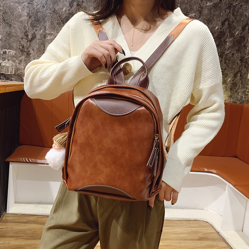 双肩包女小包韩版潮简约百搭时尚软皮背包网红撞色ins超火小书包