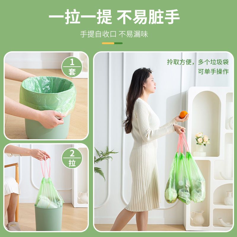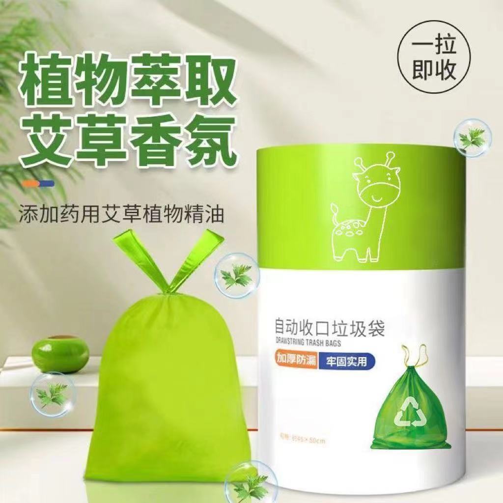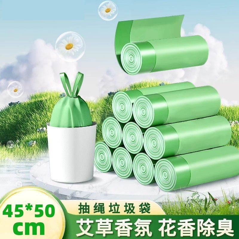 加厚艾草新款抽绳垃圾袋加厚抽绳式家用室内除臭专用加大号垃圾袋