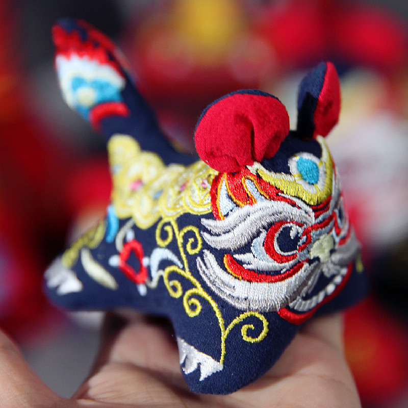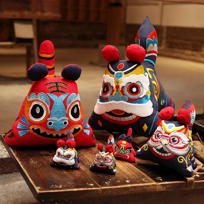 民族非遗传统手工布m老虎玩偶刺绣舞狮醒狮子摆件毛绒玩具公仔礼