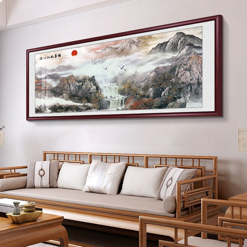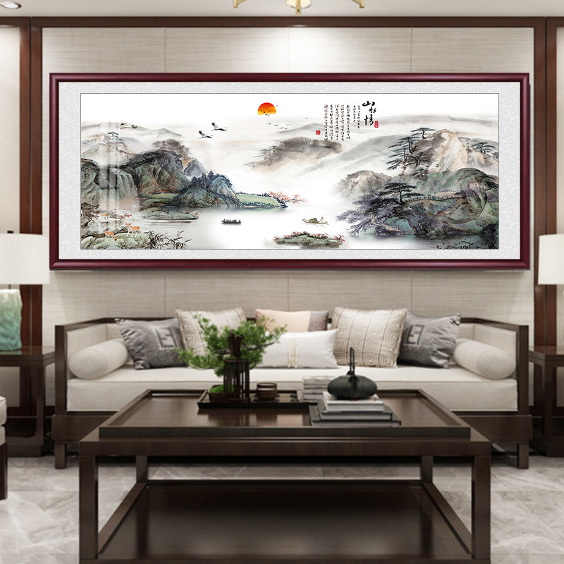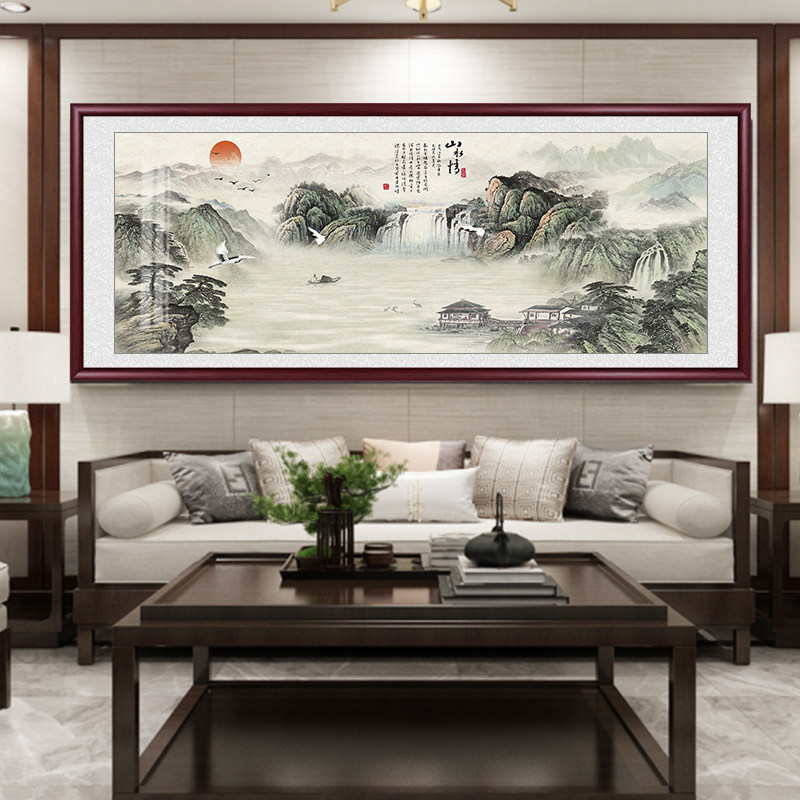 新中式山水画国画挂画山水情客厅沙发背景墙装饰画办公室靠山壁画