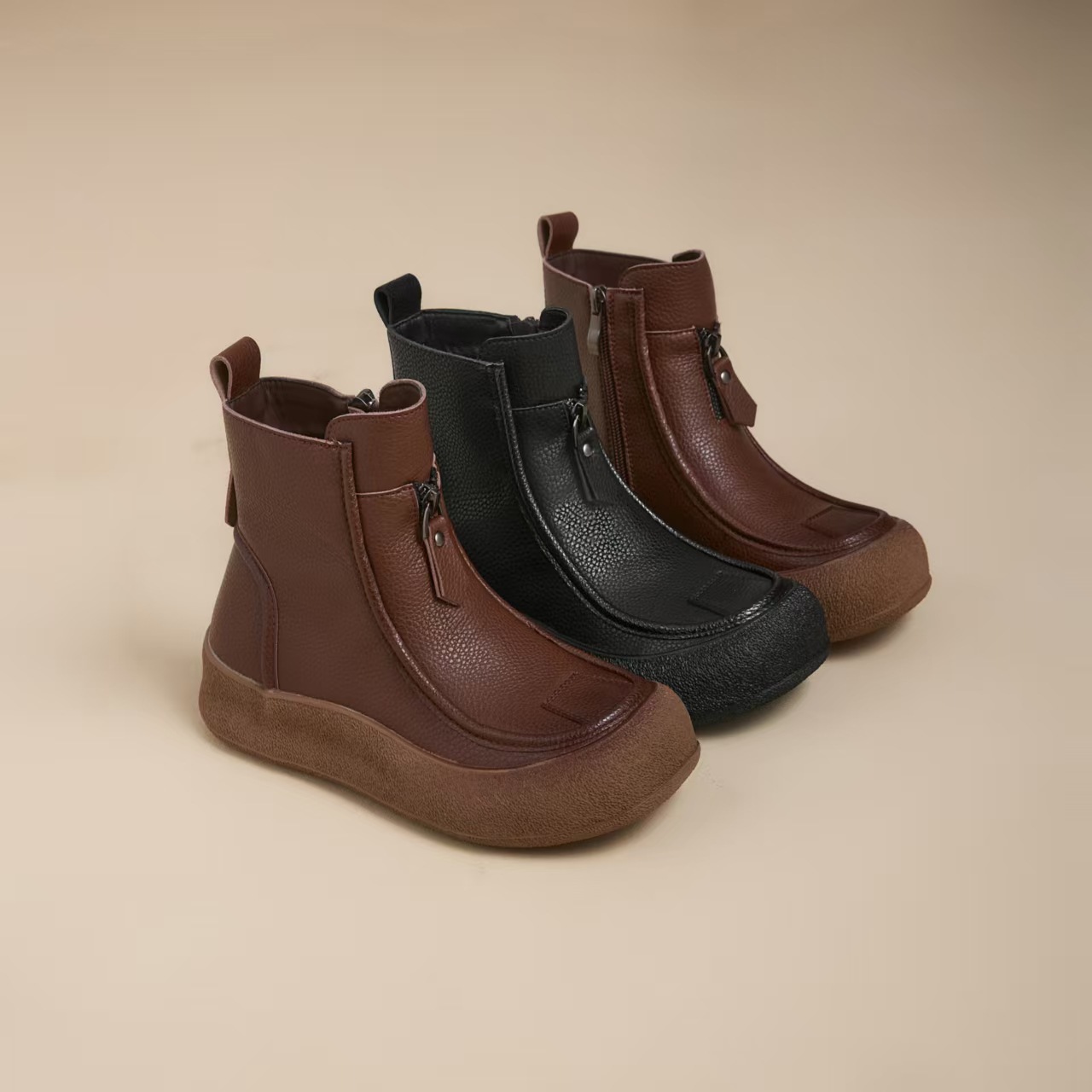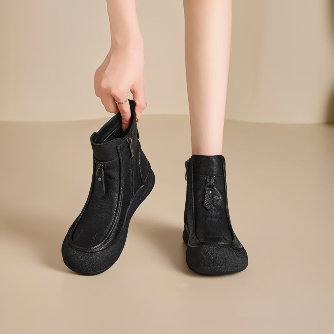 秋冬新款真皮短靴女平底休闲英伦风马丁靴软底百搭时尚圆头靴子