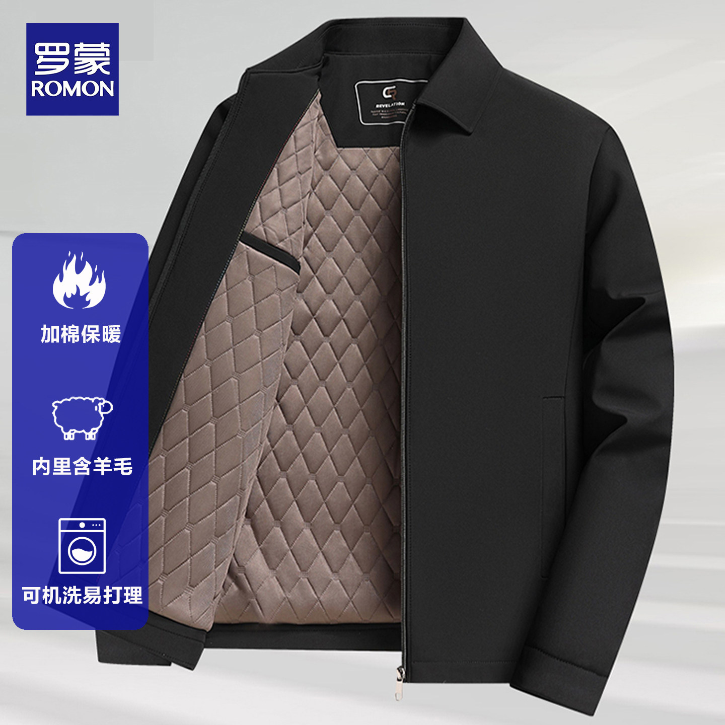 罗蒙秋冬新款男士夹克中年商务休闲加厚保暖翻领棉衣行政羊毛外套