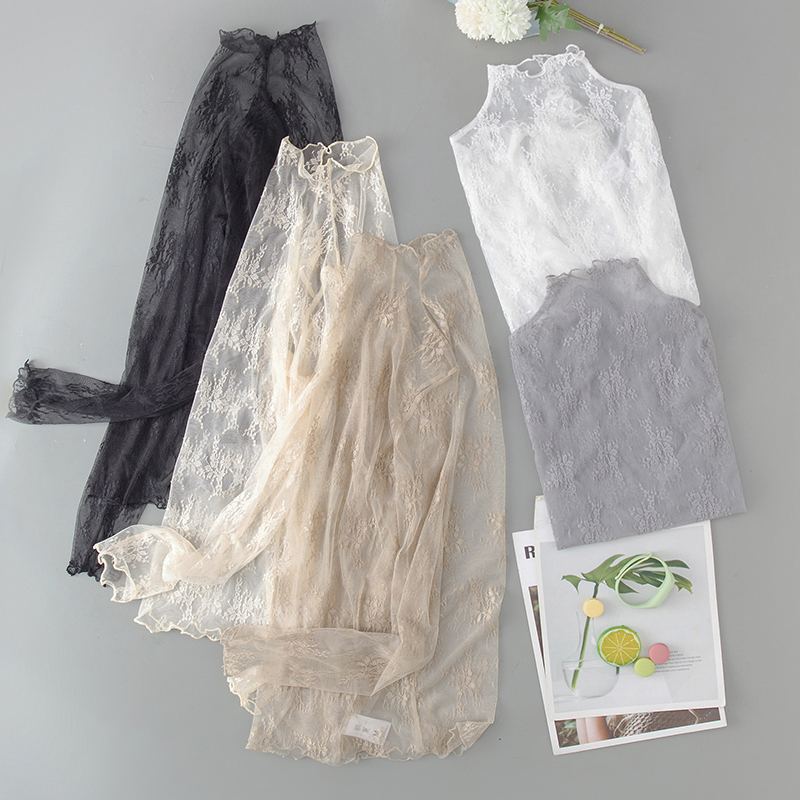 2023秋冬新款蕾丝打底衫女薄款内搭网红小衫女洋气透明网纱上衣仙