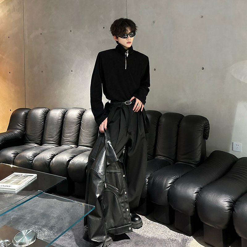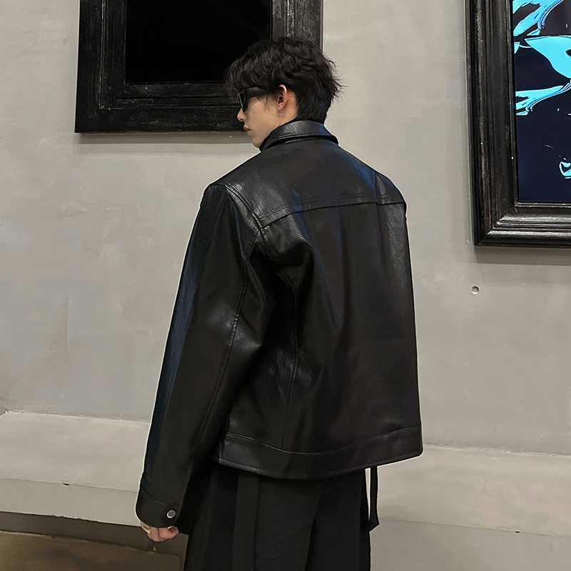 cleanfit短款垫肩皮衣外套男2025春秋季新款美式痞帅翻领机车夹克
