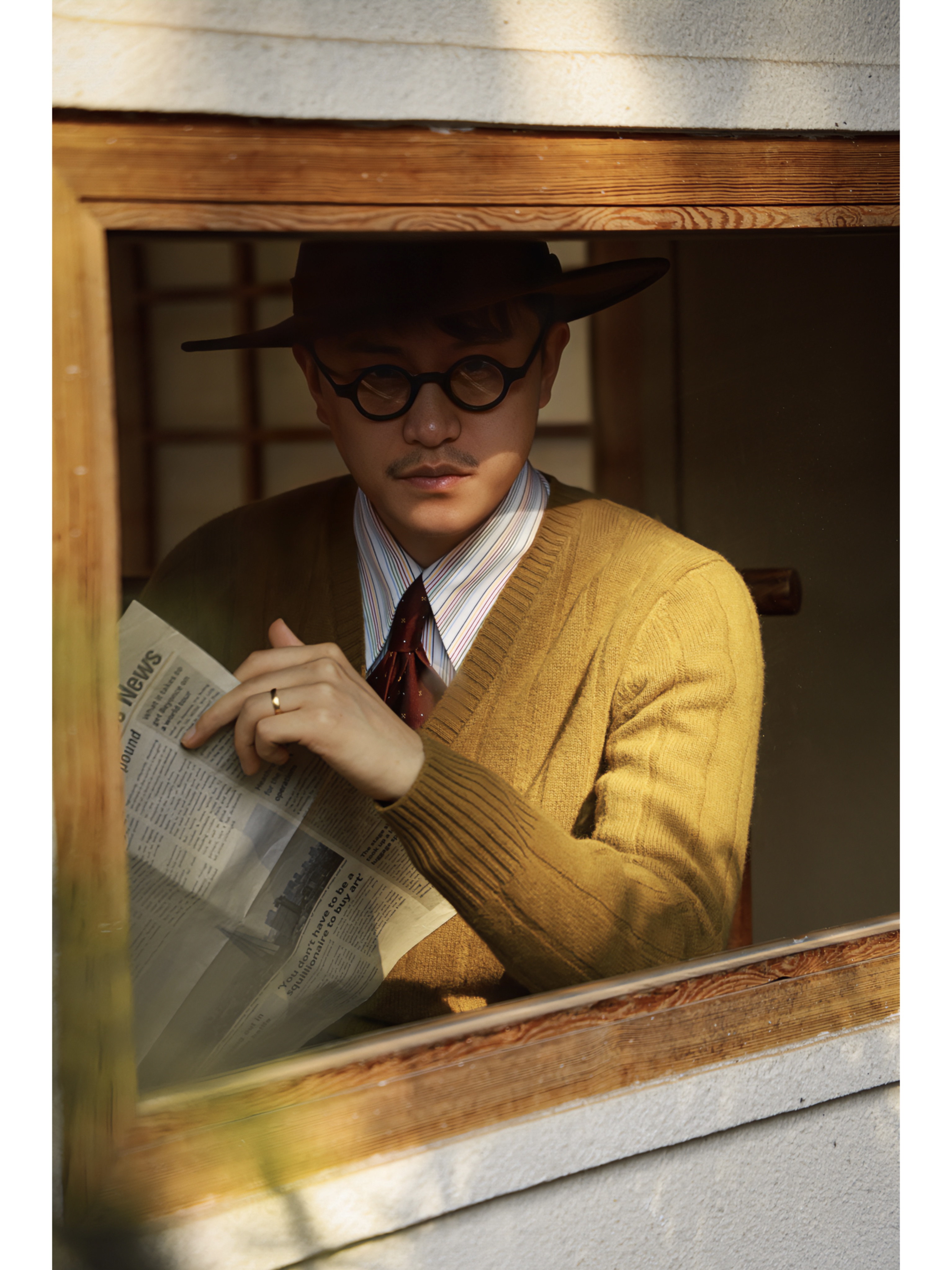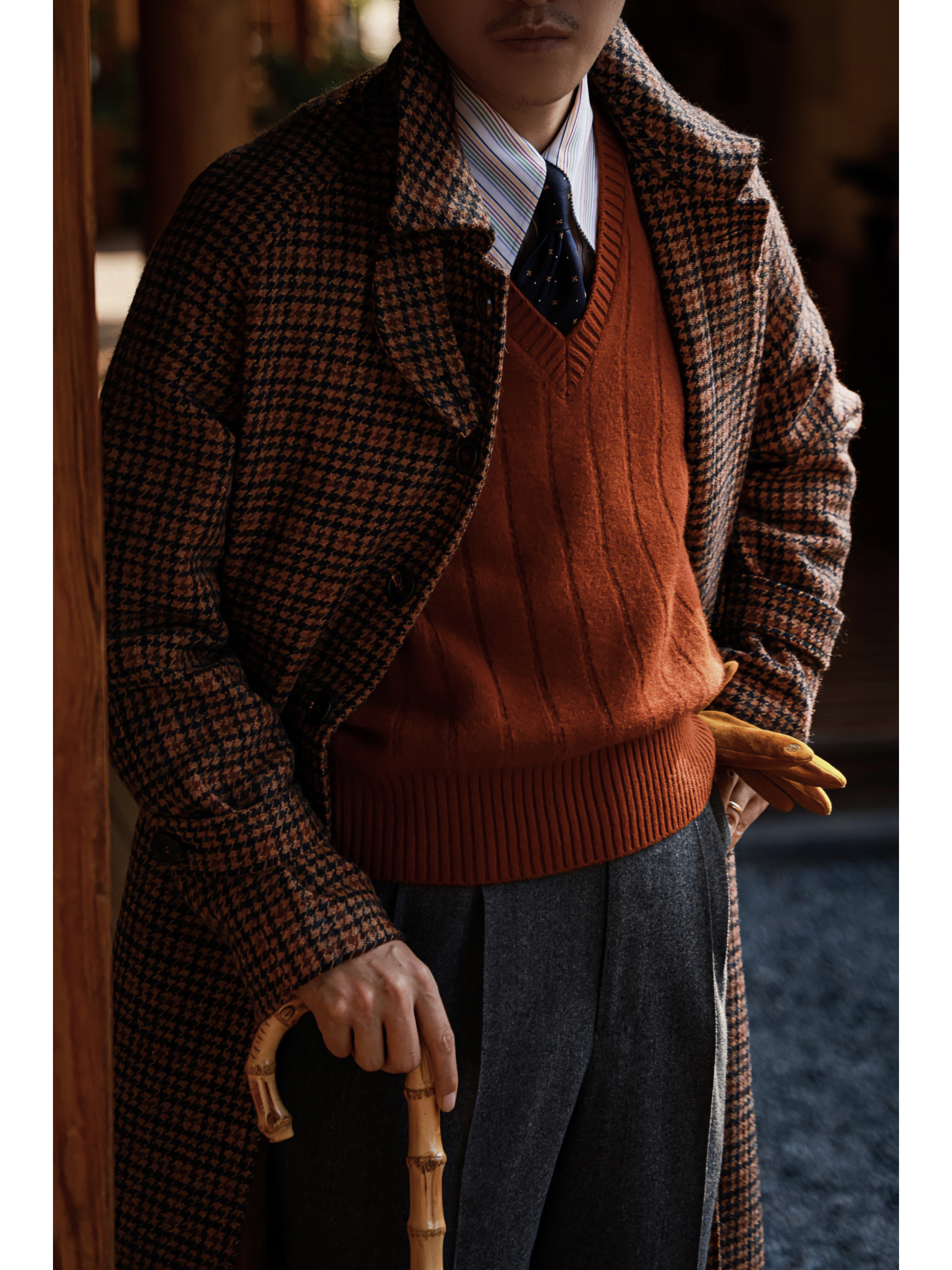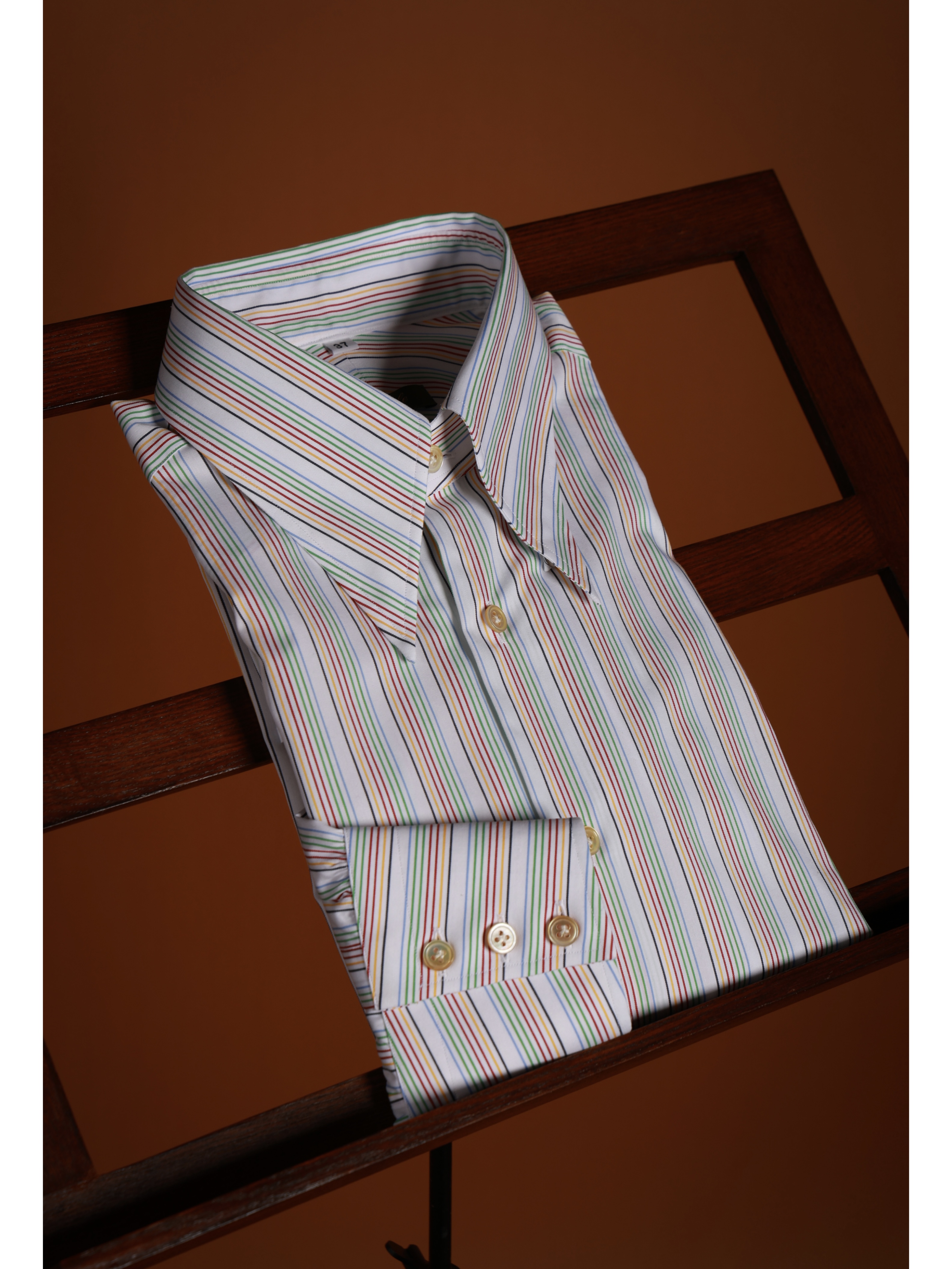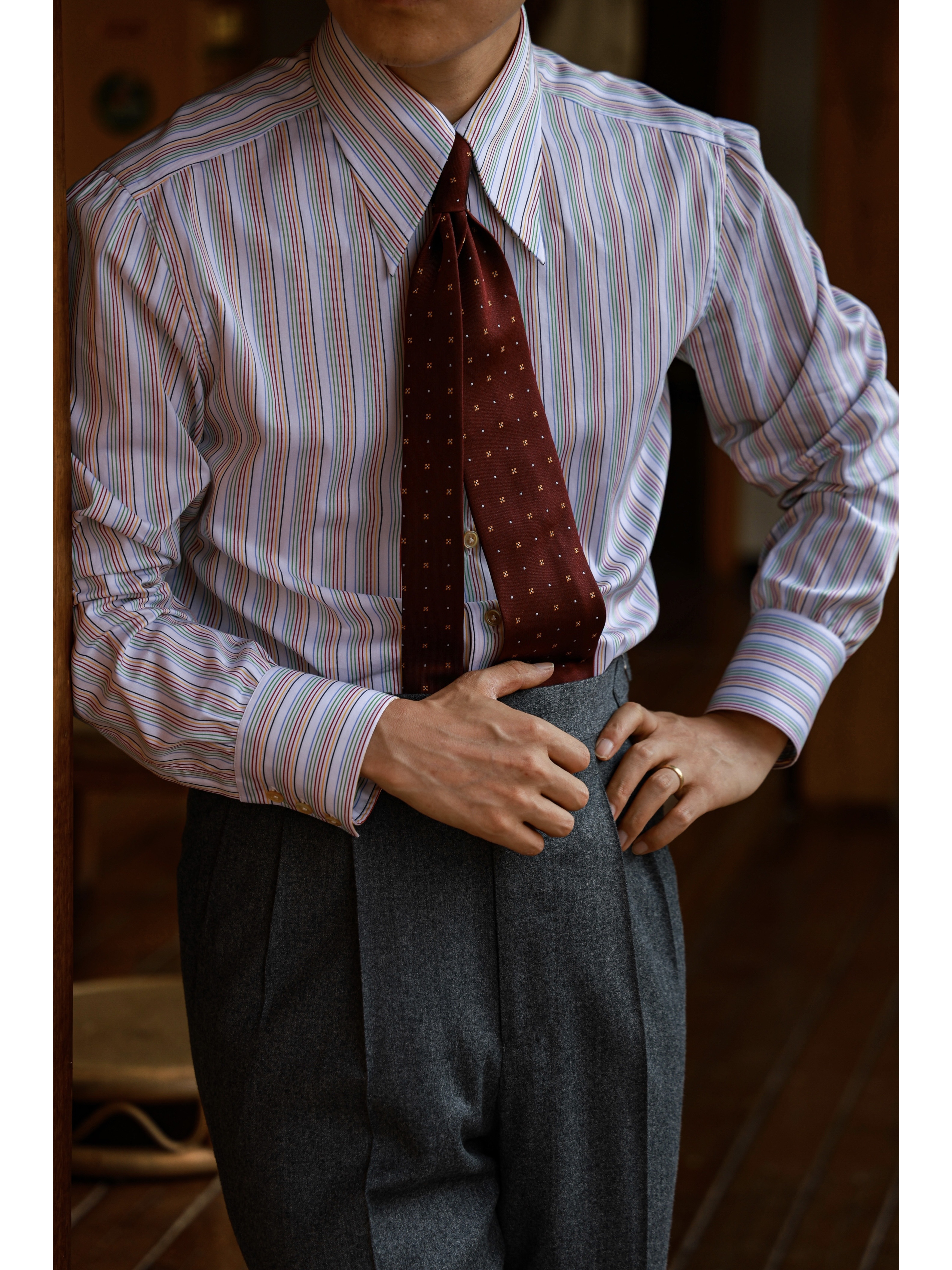 UG男装 手工三步系列 意式教父领 卡布里彩条 长尖领长袖绅士衬衫
