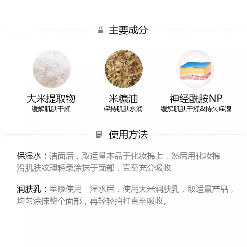 菲诗小铺大米水乳套装保湿补水学生滋润改善肌肤女护肤品神经酰胺