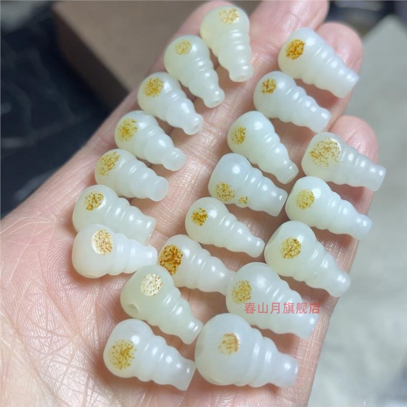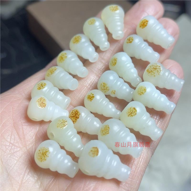 精品和田玉一级白玉巧色洒金皮小籽一体文玩三通佛头人工皮色配饰