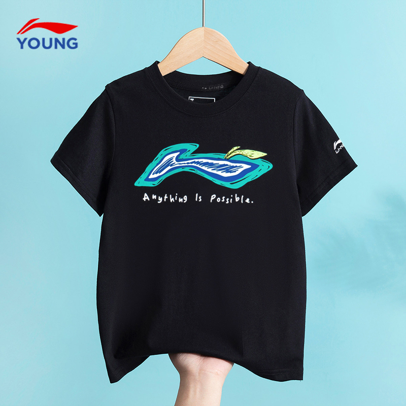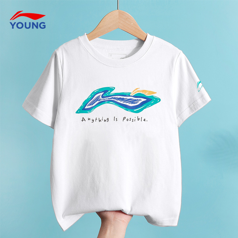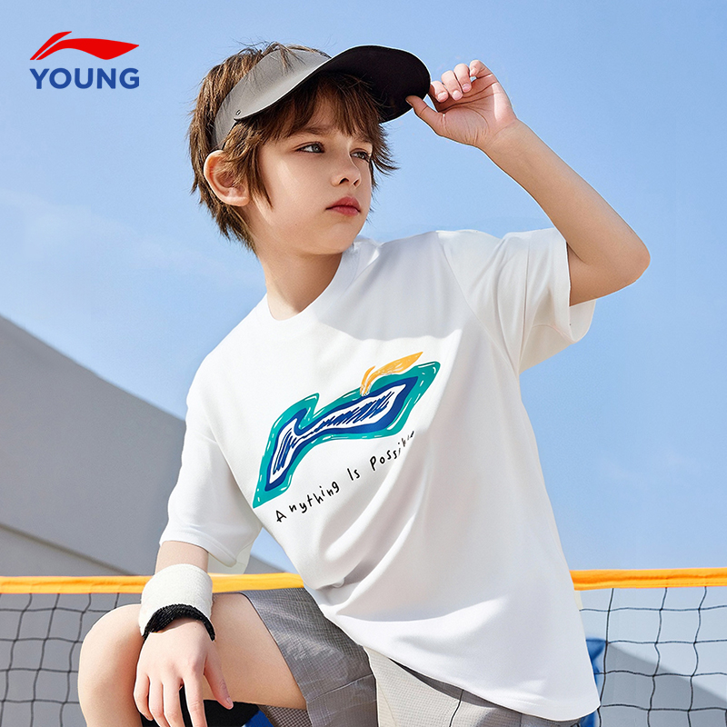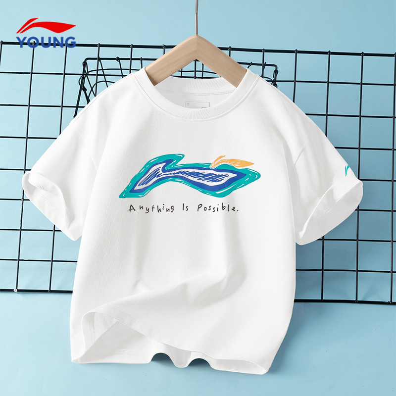 李宁儿童短袖2025新款男女大童运动半袖吸汗透气纯棉宽松白色t恤