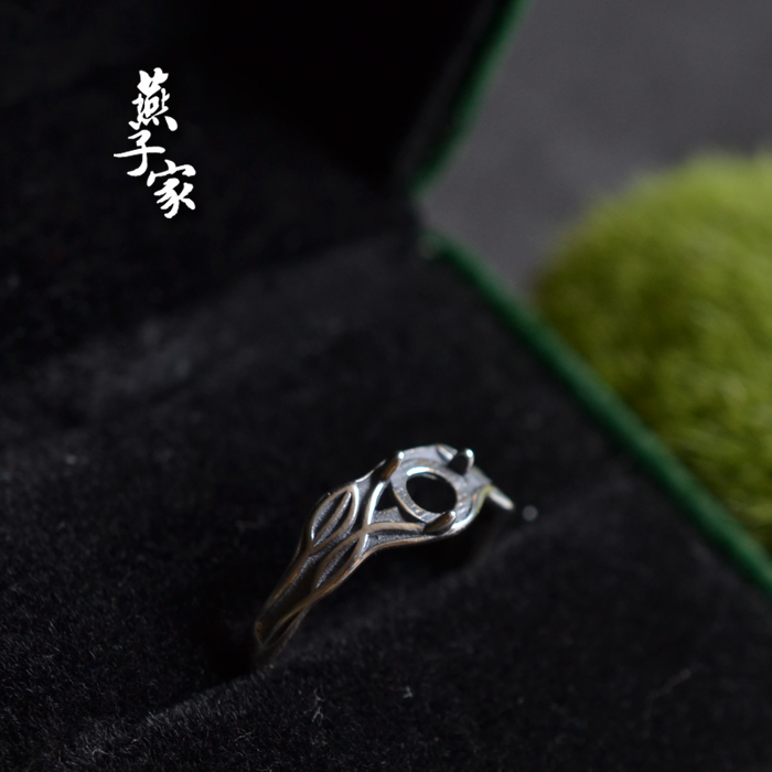燕子家925纯银女款小众森系戒指空托Vintage小戒面5*5复古戒托