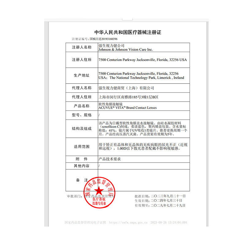 强生vita悦氧近视透明隐形眼镜硅水凝胶月抛盒安视优官方