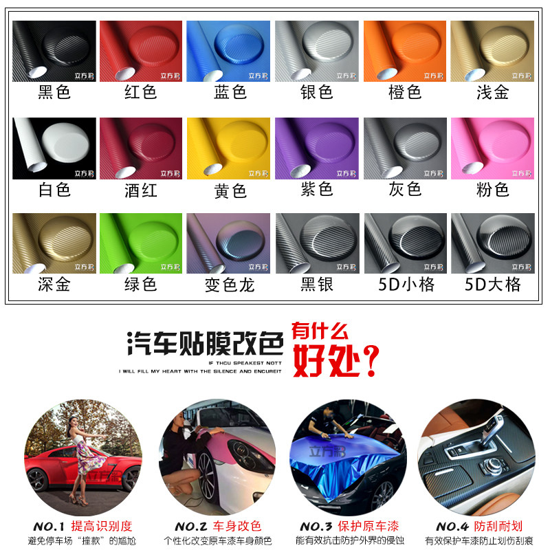 汽车改色膜碳纤维内饰贴纸电动摩托车身车顶中控门把亮面改色贴膜