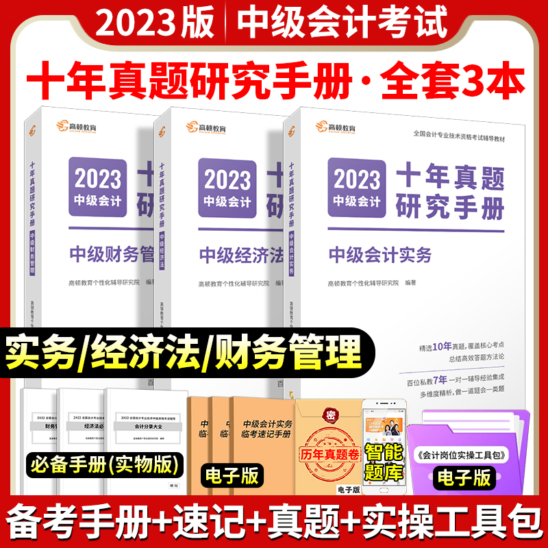 高顿教育2023年新版中级会计职称考试辅导教材十年真题研究手册中级会计实务财务管理经济法历年真题库习题集搭中会东奥轻松过关一
