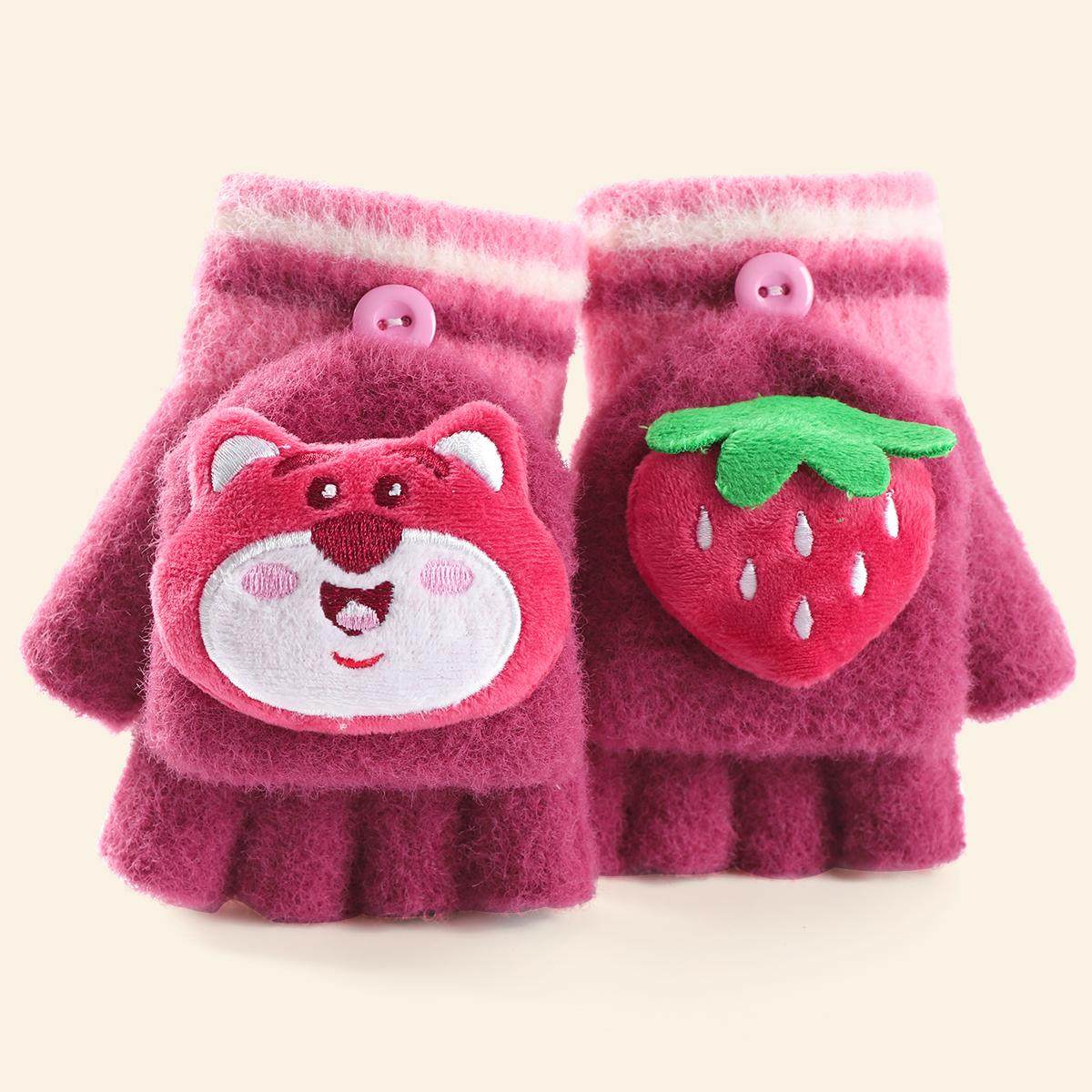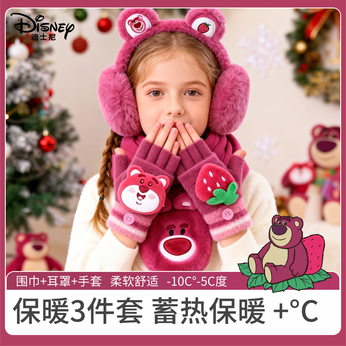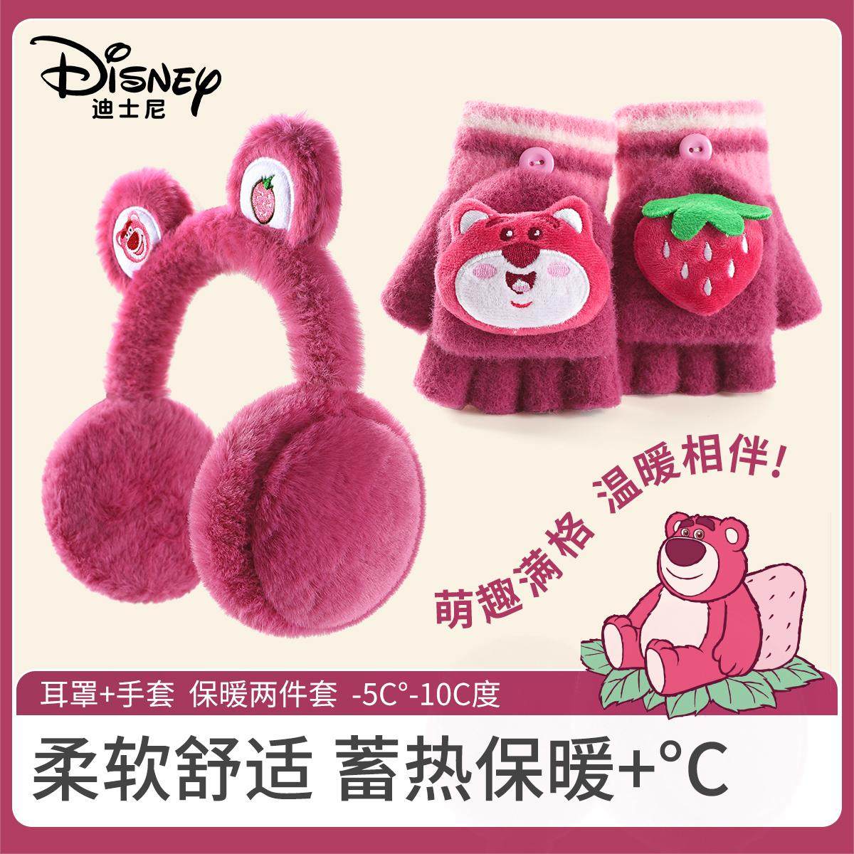 迪士尼草莓熊儿童手套耳罩毛绒宝宝秋冬款冬女童耳捂保暖可爱套装