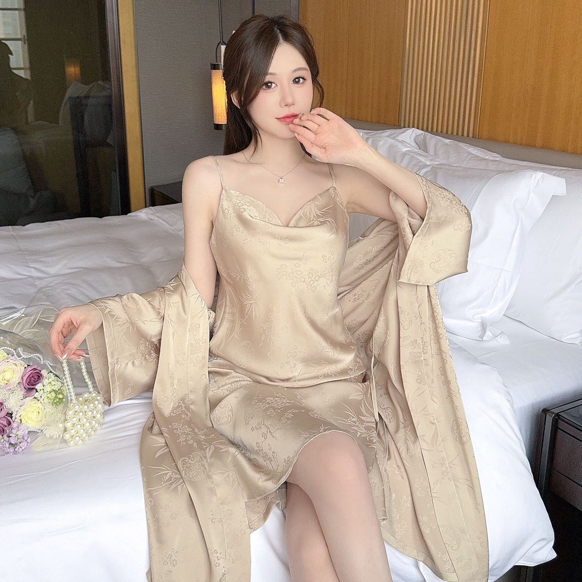 乐姿梦睡衣女春夏晨袍高级感冰丝纯欲性感吊带睡裙睡袍奢华家居服