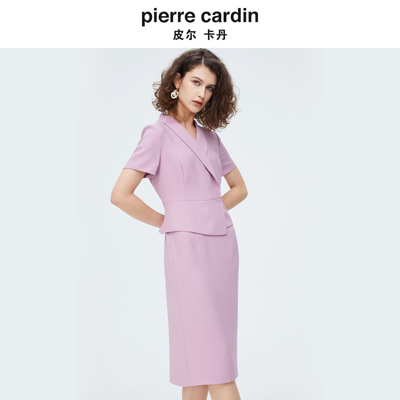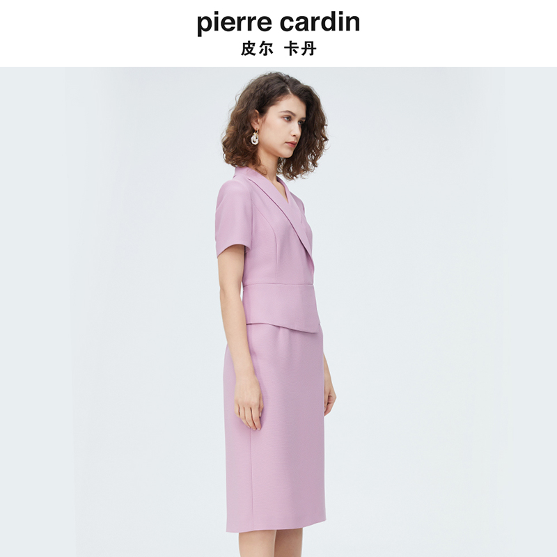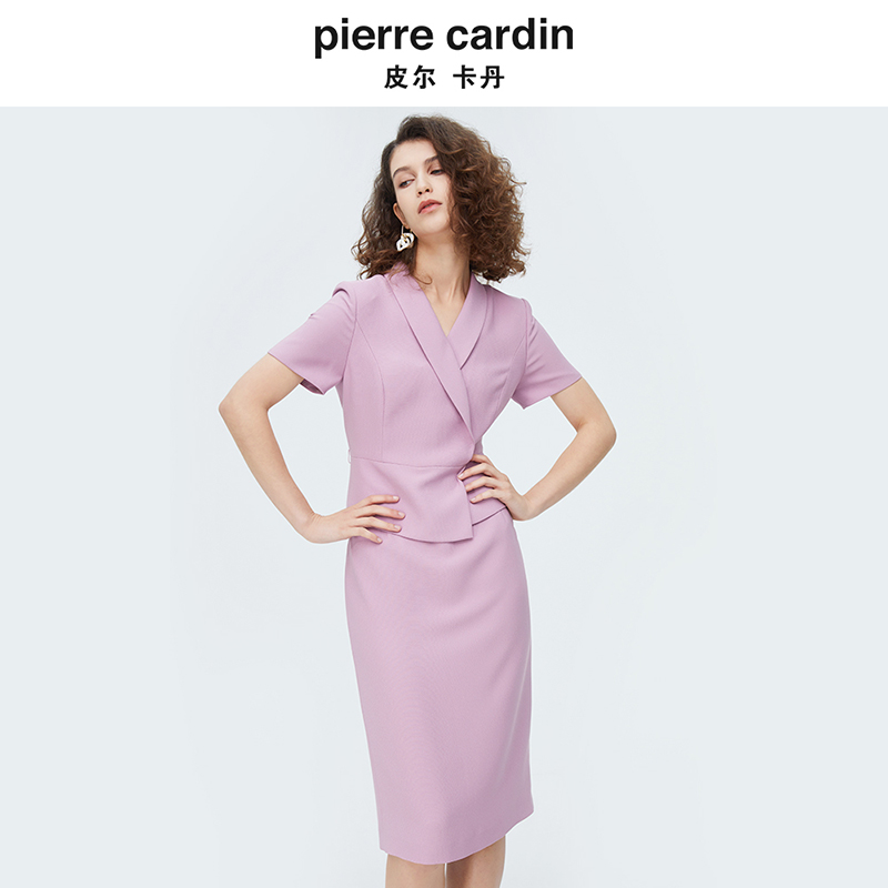 商场同款皮尔卡丹女装新款经典通勤修身假两件连衣裙