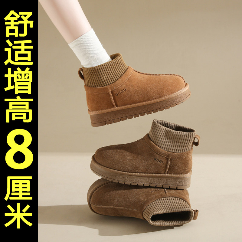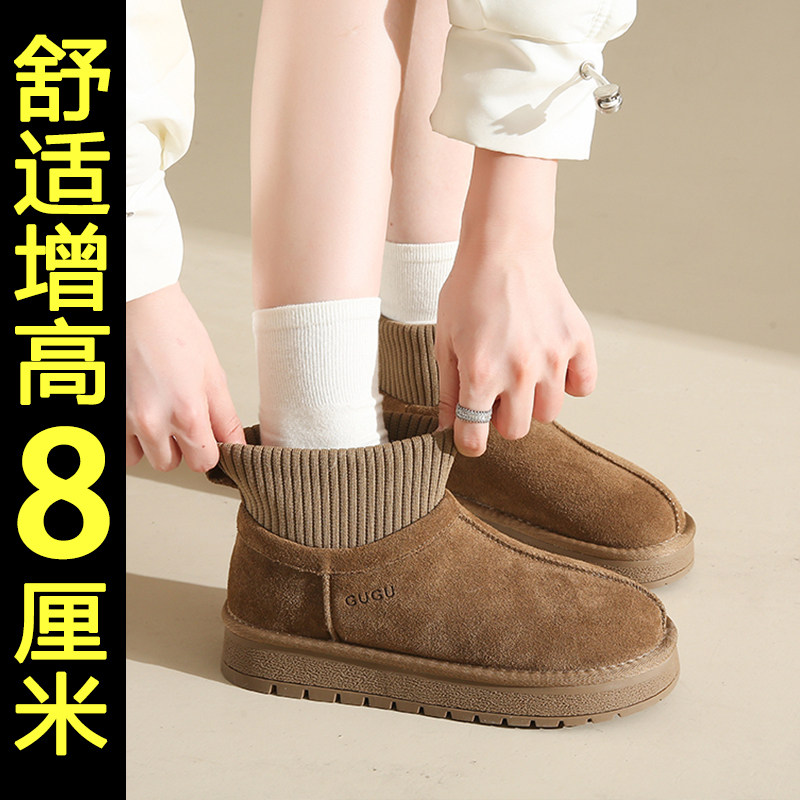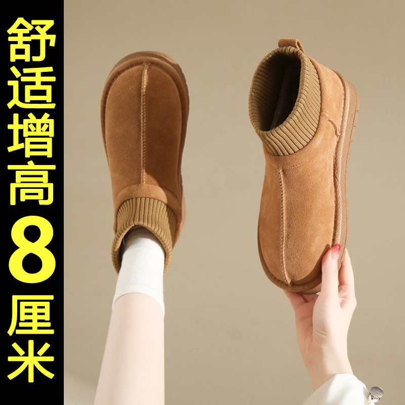 厚底雪地靴女款2025新款冬季内增高保暖加厚东北棉鞋防滑加绒短靴
