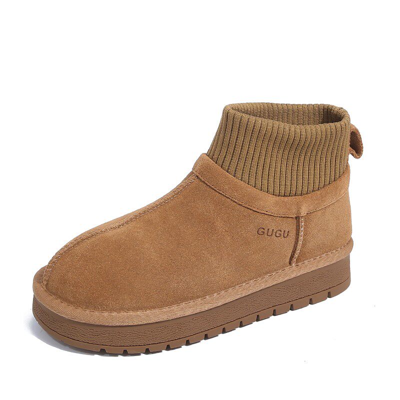 厚底雪地靴内增高加绒东北短靴