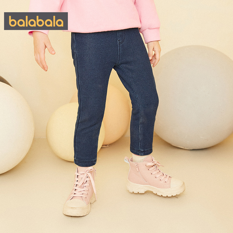 巴拉巴拉女童牛仔裤小宝宝加绒加厚裤子儿童秋冬季新款童装打底裤