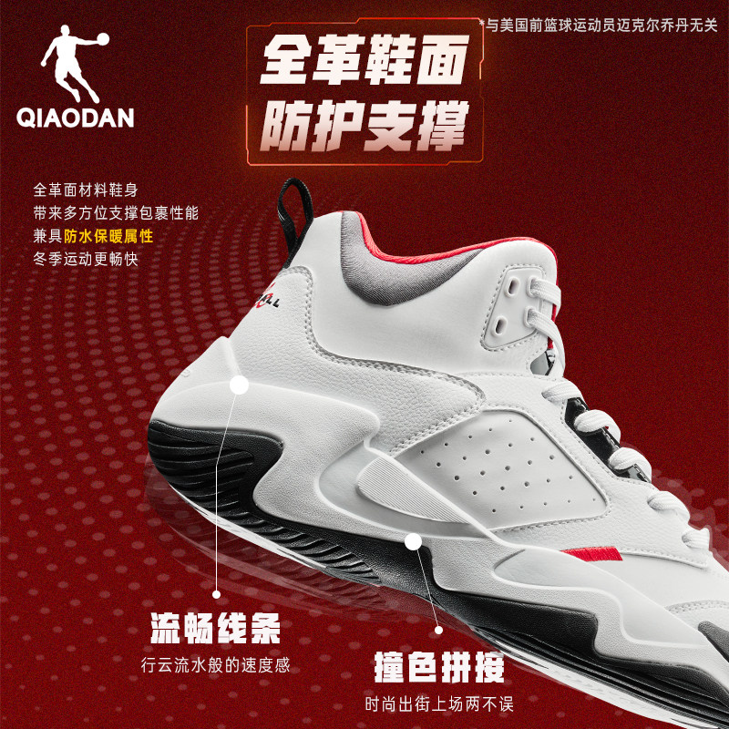 乔丹防滑加绒外穿篮球鞋皮面男2025冬季新款保暖实战防水运动棉鞋