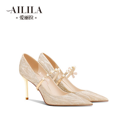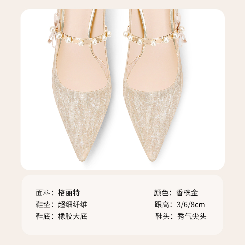 香槟色绑带结婚鞋女2025新款春季新娘高跟鞋禾秀主婚纱两穿不累脚