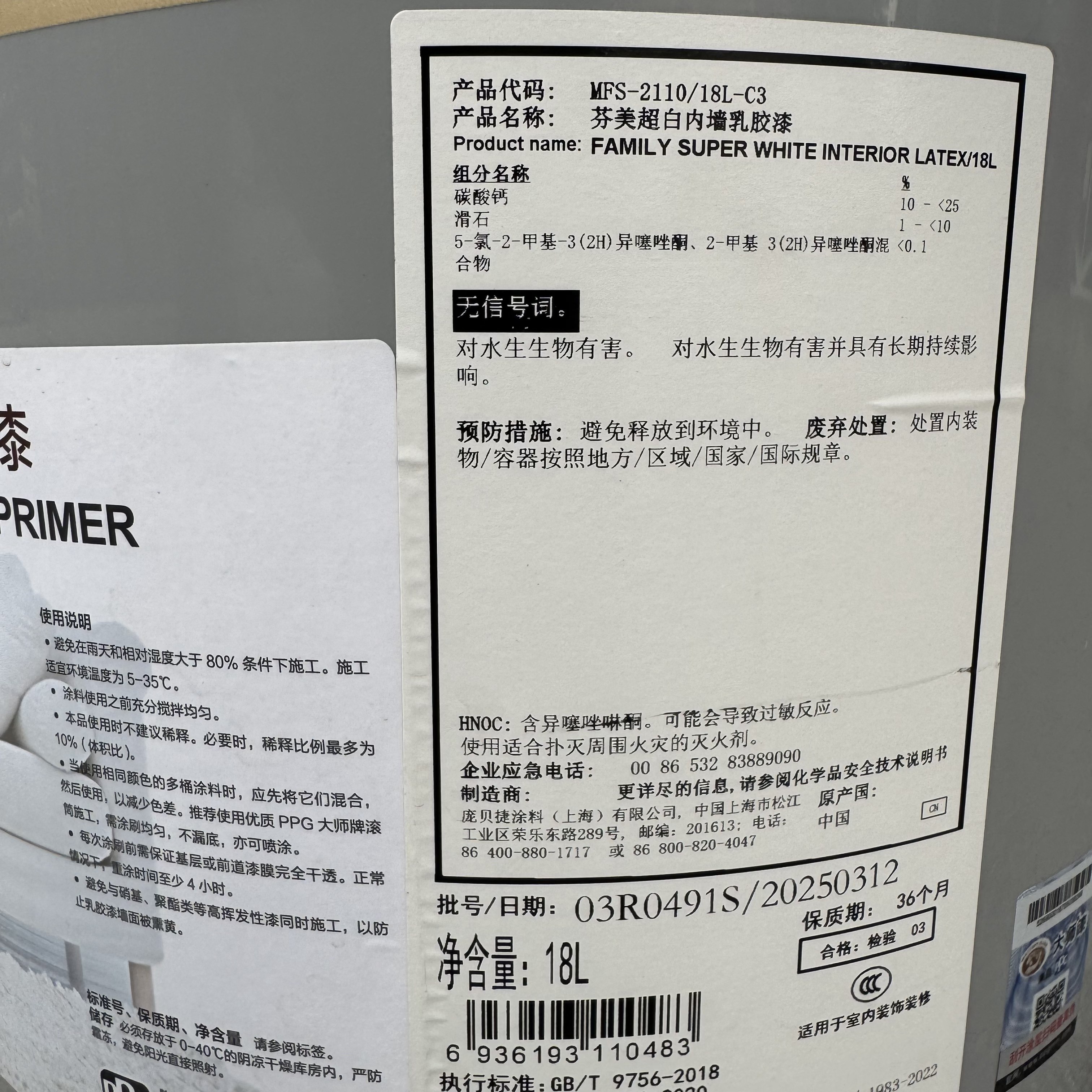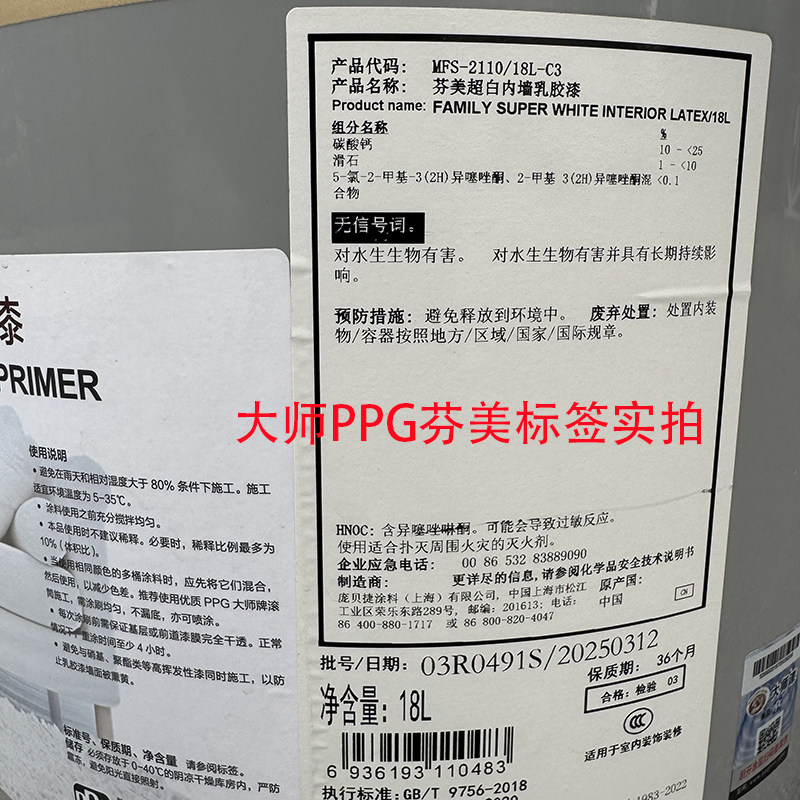 PPG大师漆芬美乳胶漆室内环保自刷白涂料内墙环保净味墙面漆哑光