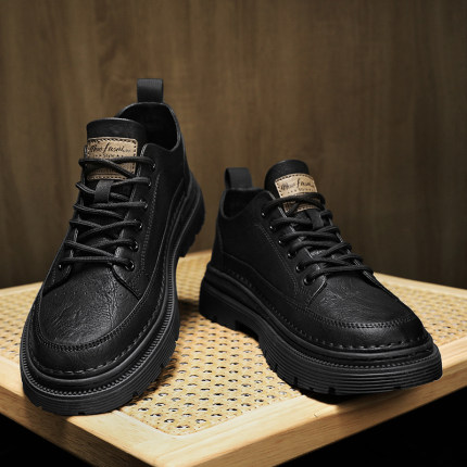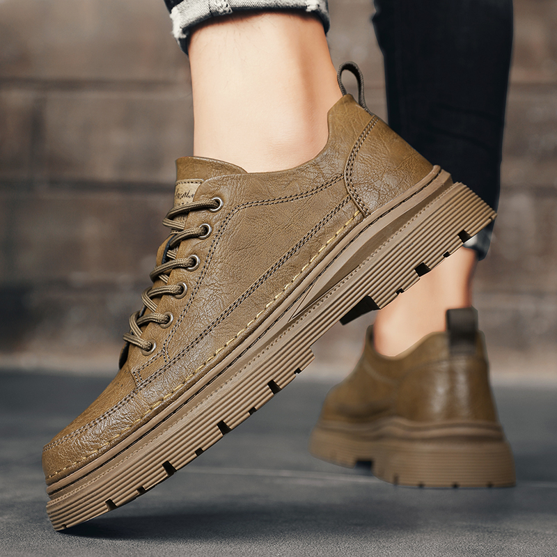男鞋秋季防滑防臭英伦商务正装休闲皮鞋运动增高板鞋真皮百搭潮鞋