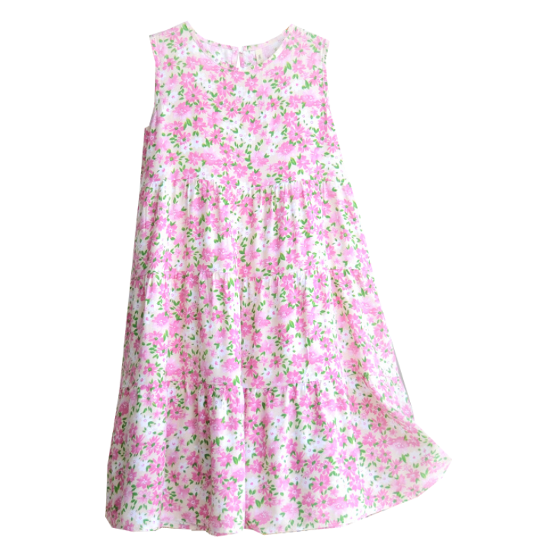 中大童夏款棉绸连衣裙洋气女童背心蛋糕裙儿童人造棉度假风碎花裙