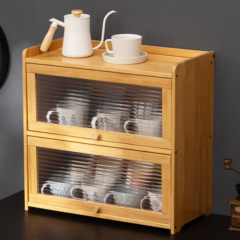 收纳柜子置物柜家用防尘杯架子零食长虹玻璃桌面多层整理架抽屉式
