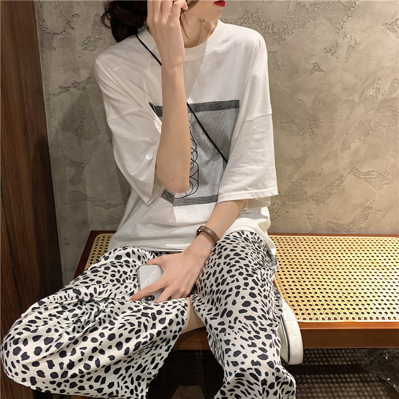 睡衣女夏季纯棉长裤短袖两件套装ins风宽松可外穿出门休闲家居服