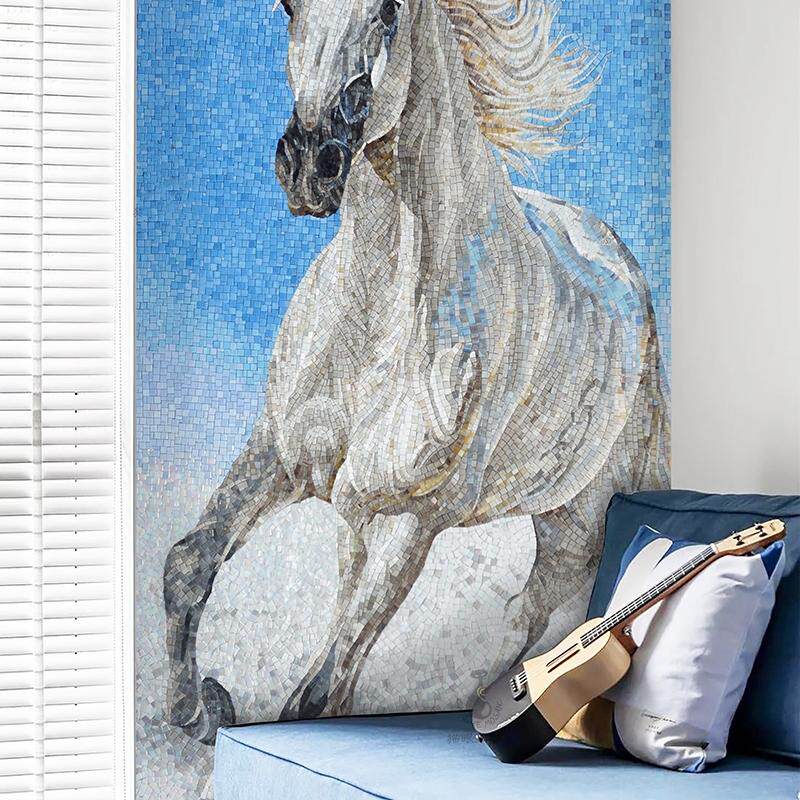 白龙马玄关马赛克拼图剪画客厅沙发电视背景墙瓷砖简约现代装饰画