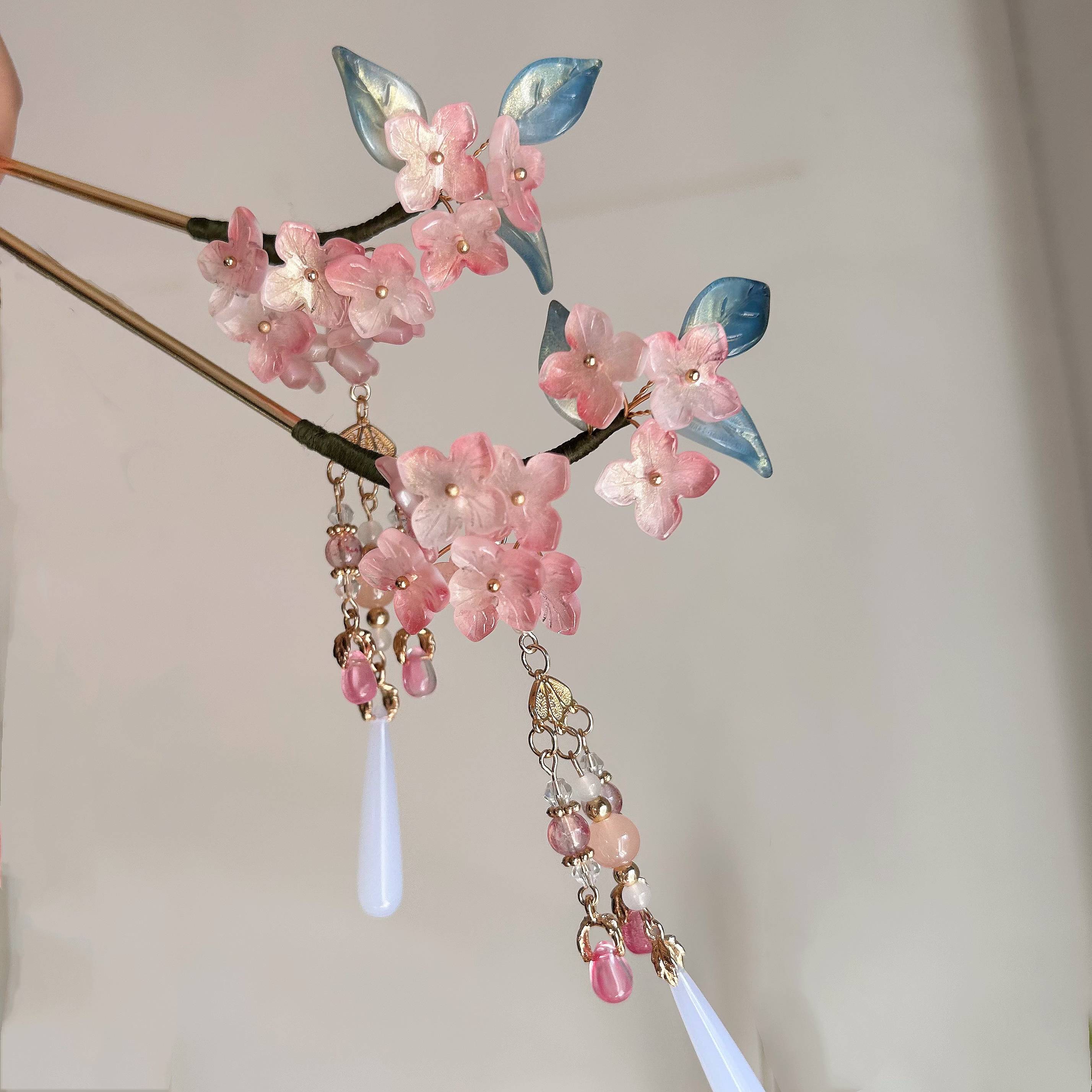 汉服发饰琉璃绣球花发簪子古风侧边掩鬓点缀发饰古装盘发钗配饰品