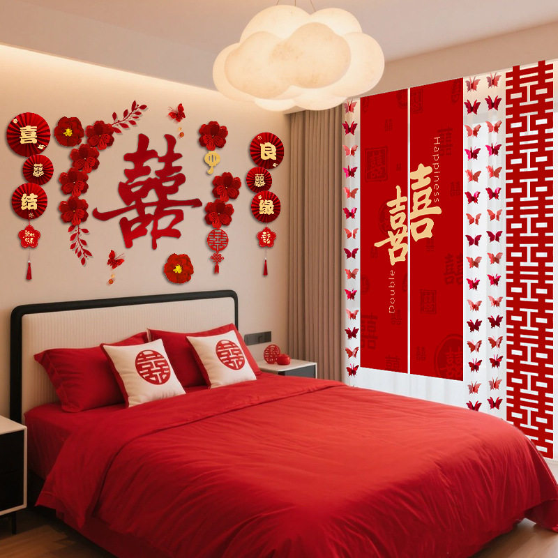 结婚用的所有东西婚房布置套装结婚男方女方卧室床头装饰新房窗帘