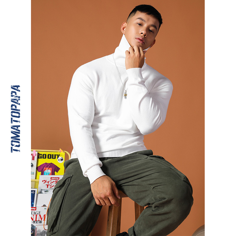 TOMATOPAPA欧美青年纯色高领保暖针织毛衣秋季新品运动男潮打底衫
