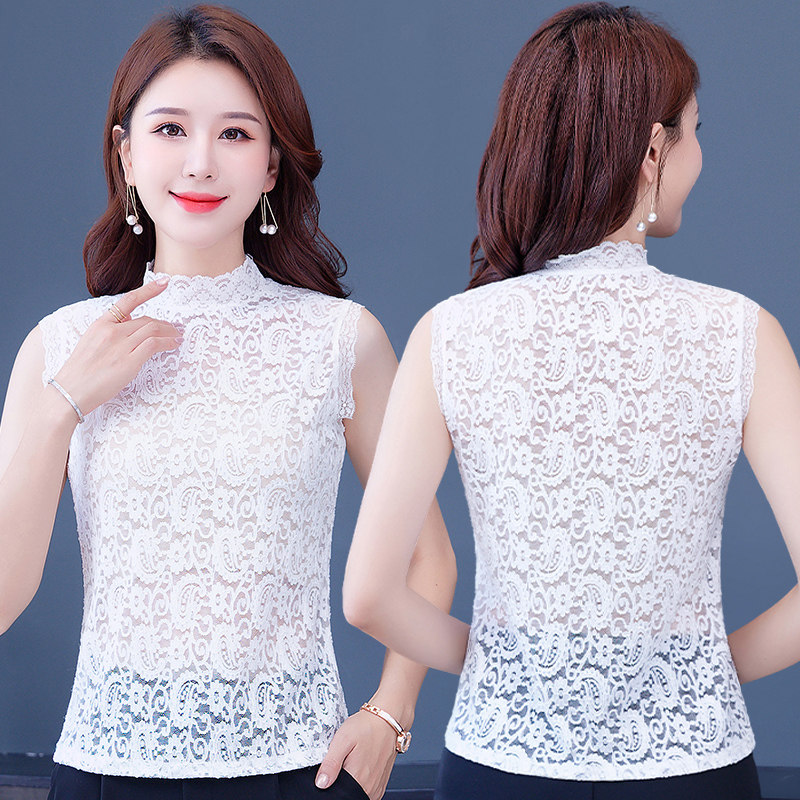蕾丝花边领打底衫女秋冬季2025新款内搭无袖高领假领百搭背心上衣
