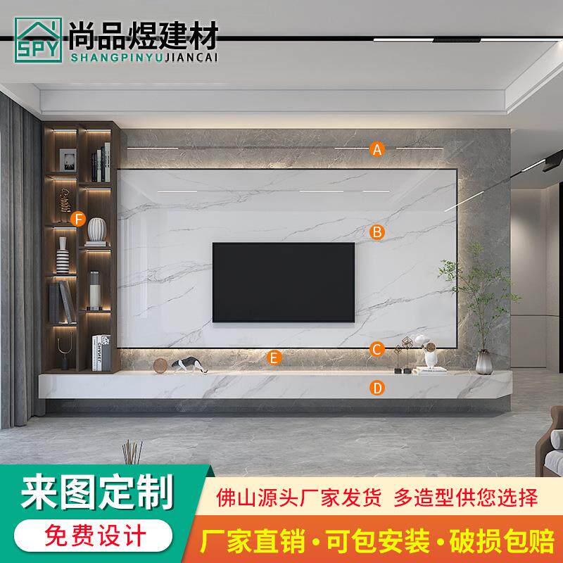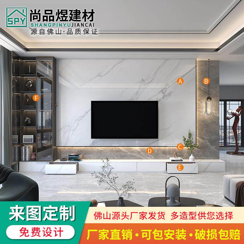 微晶石悬空岩板电视背景墙大理石瓷砖客厅现代简约实木格栅影视墙