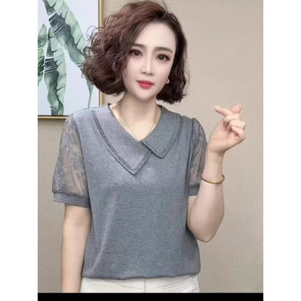 翻领大码短袖t恤女上衣2025新款夏季洋气妈妈装中老年polo衫体恤