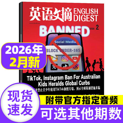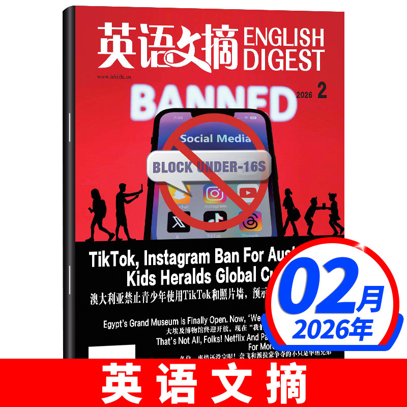 英语文摘杂志2026年1/2月新【全年/半年订阅】2025/2024年(2023/2022年合订本)中英文双语期刊大学英语四六级考研英语辅导书过刊