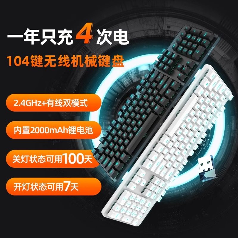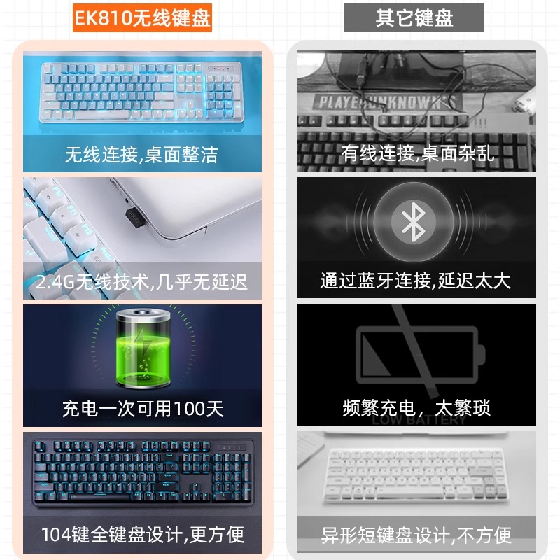 达尔优EK810有线无线蓝牙电脑ipad平板机械键盘2.4G电竞游戏办公