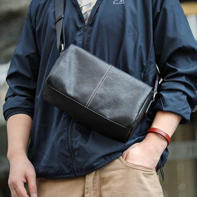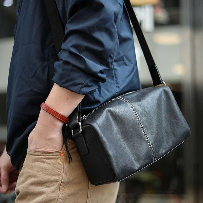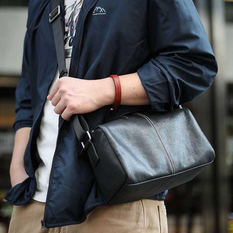 香港IT HKins真皮男士背包通勤单肩斜挎包男软皮小包大学生枕头包