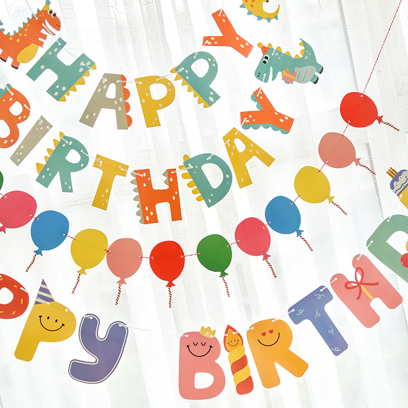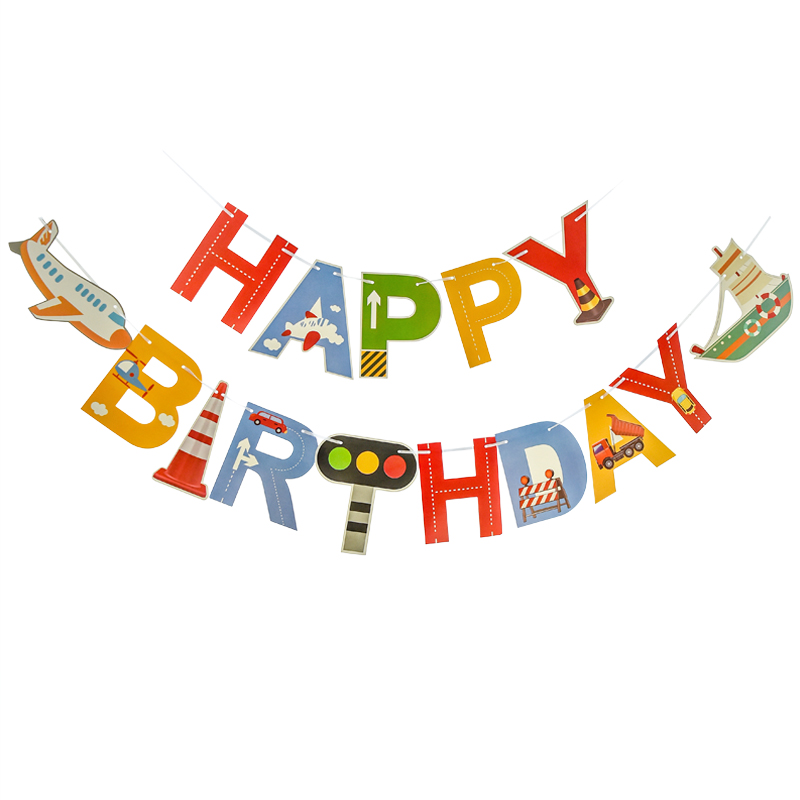 儿童卡通生日派对汽车拉旗横幅装饰宝宝一周岁背景墙场景布置拉花