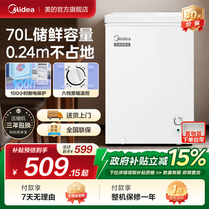 美的70升冰柜家用小型商用冷冻冷藏两用冷柜卧室冰箱官方旗舰店