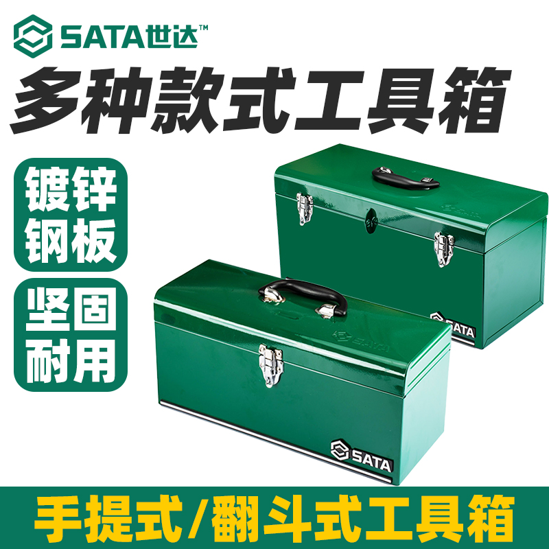 世达钢板工具箱三/五翻斗手提式铁皮铁盒工具盒子加厚17寸95104A