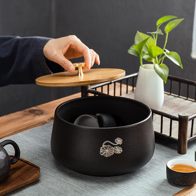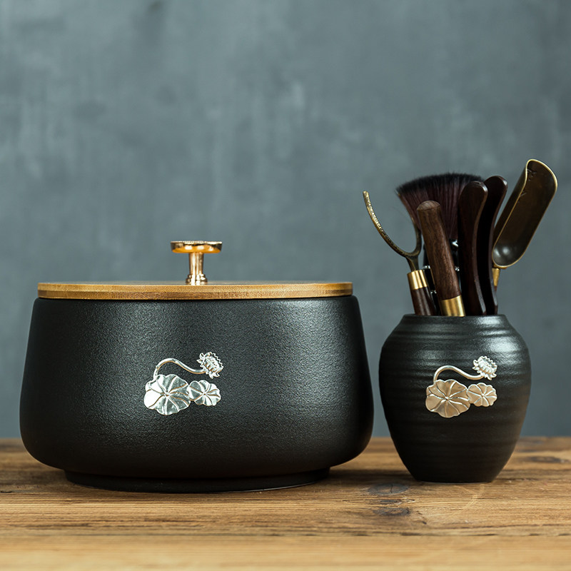 黑陶特大号茶洗陶瓷有盖办公茶洗茶渣缸家用杯子笔洗杯碗茶具配件