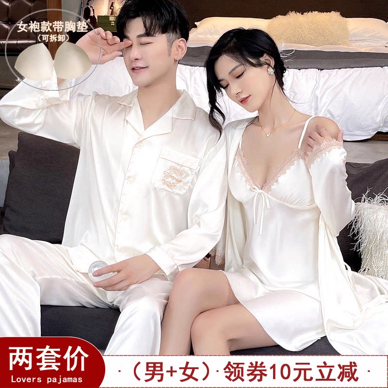 情侣性感睡衣女春秋天夏季睡袍吊带睡裙高级感冰丝绸家居服套装男