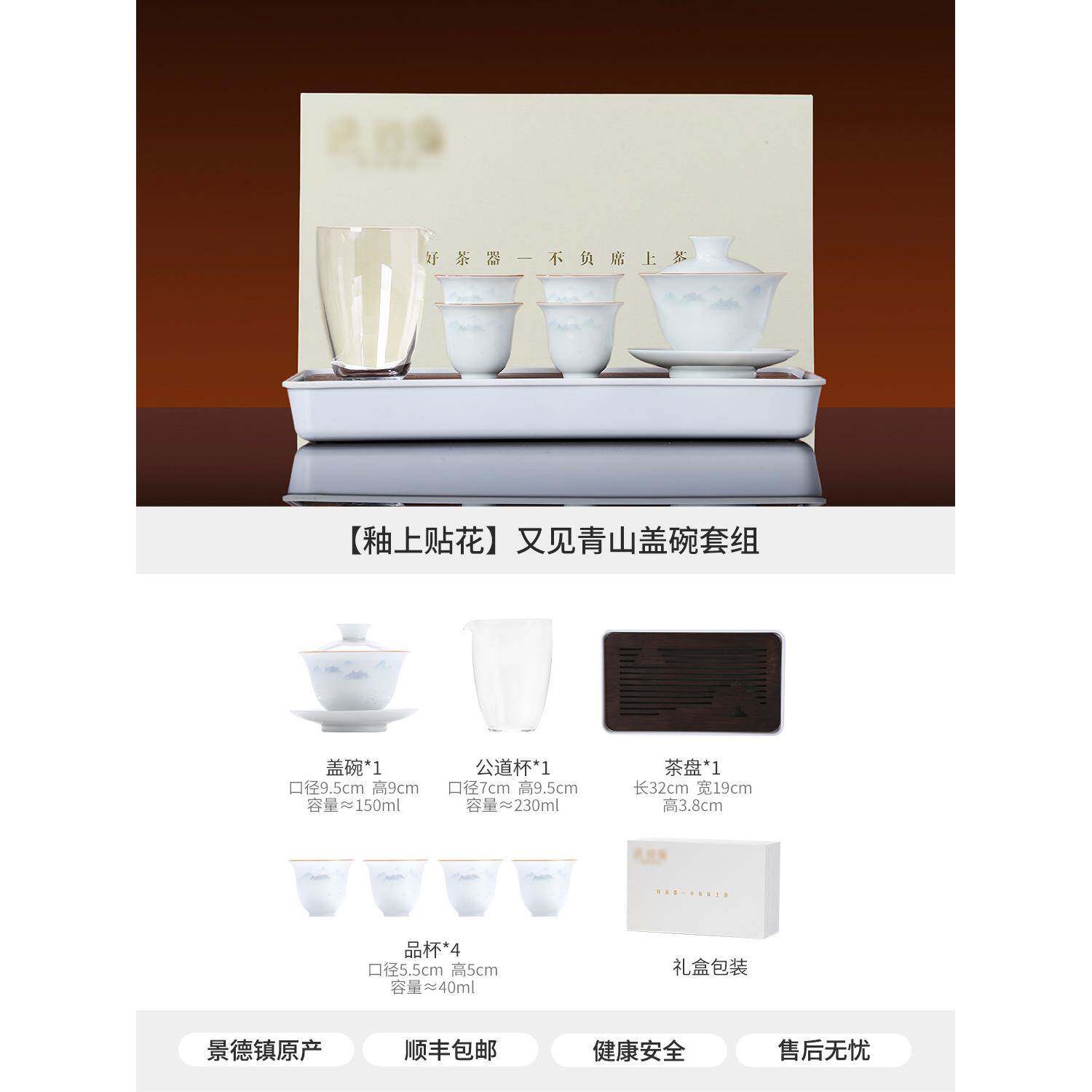 景德镇官方陶瓷盖碗茶杯中式家用茶具套装送长辈送礼高端礼盒装