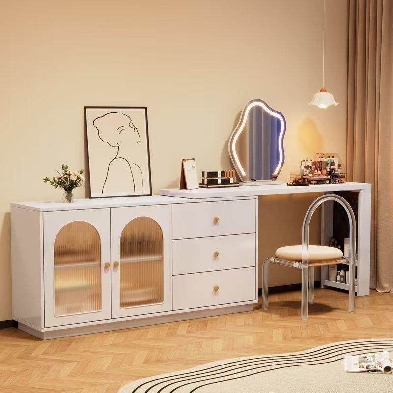 书桌柜子一体中古风卧室成套家具小户型可伸缩梳妆台凳转角斗柜