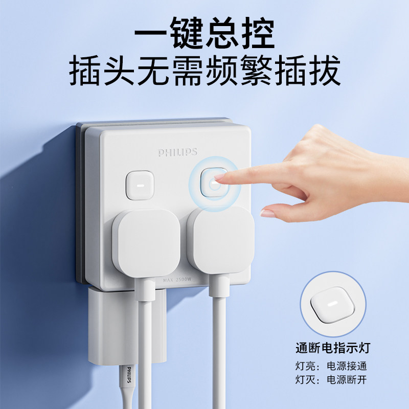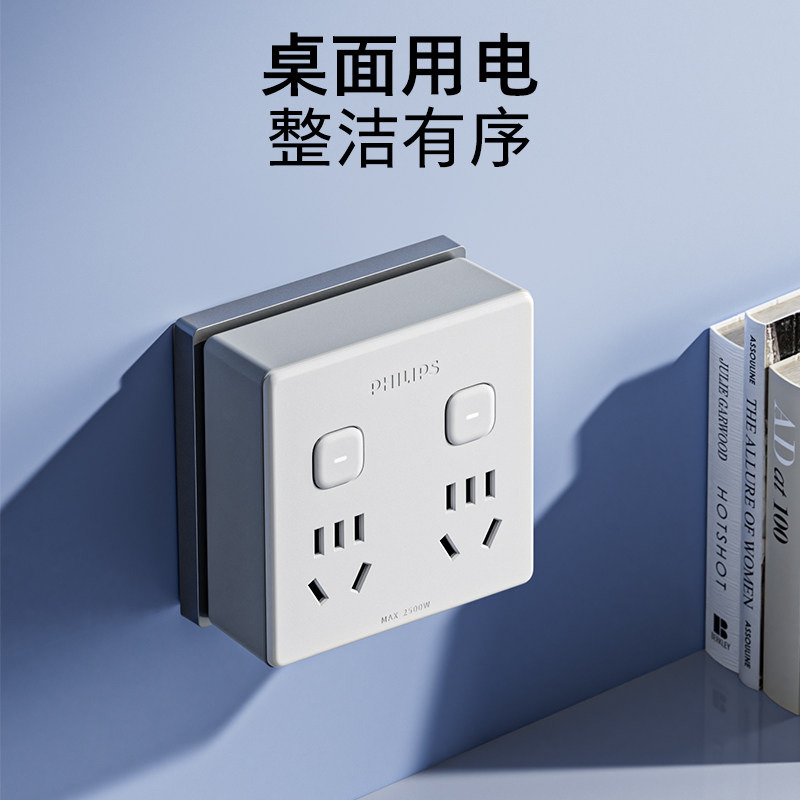 飞利浦一转多扩展插座86面板转换插头接线板USB大学生宿舍排插