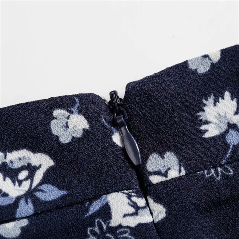 文艺复古碎花深色A字半身裙长裙
