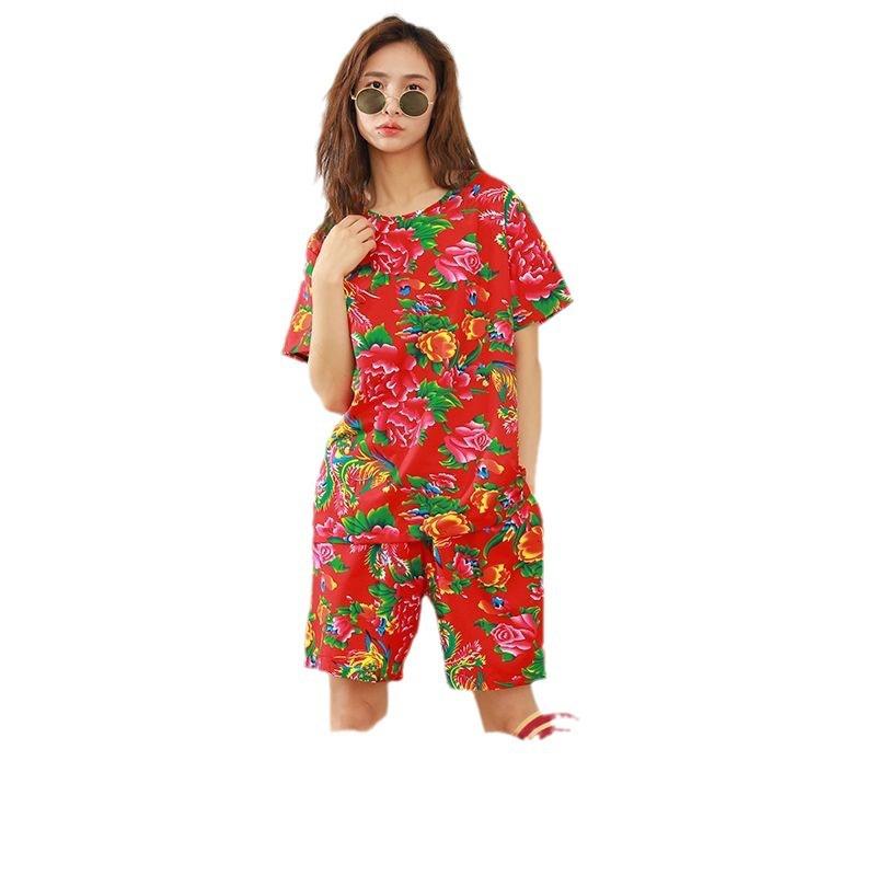 抖音天竺少女年会表演服大展宏图鸿图东北大花布搞笑显眼团建演出