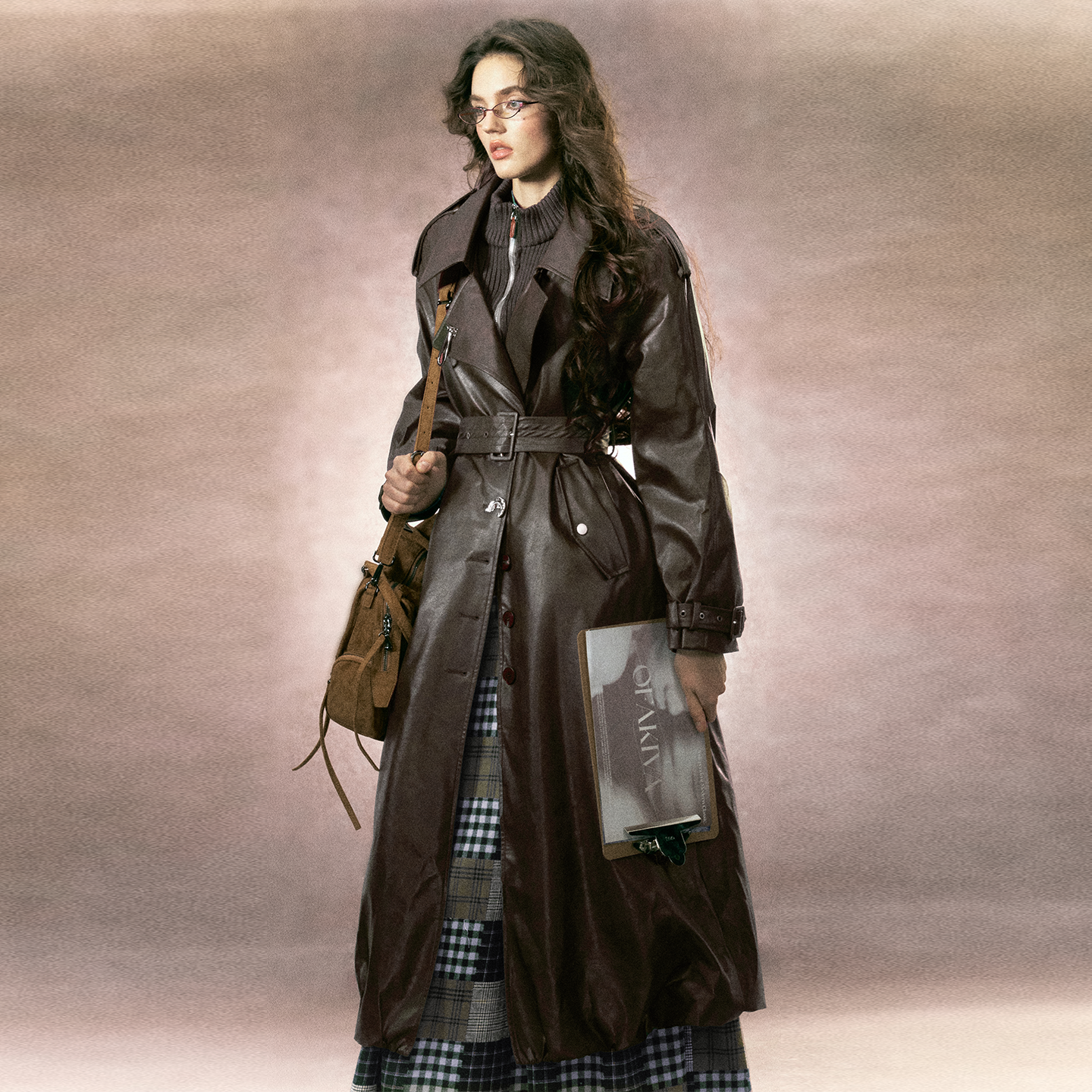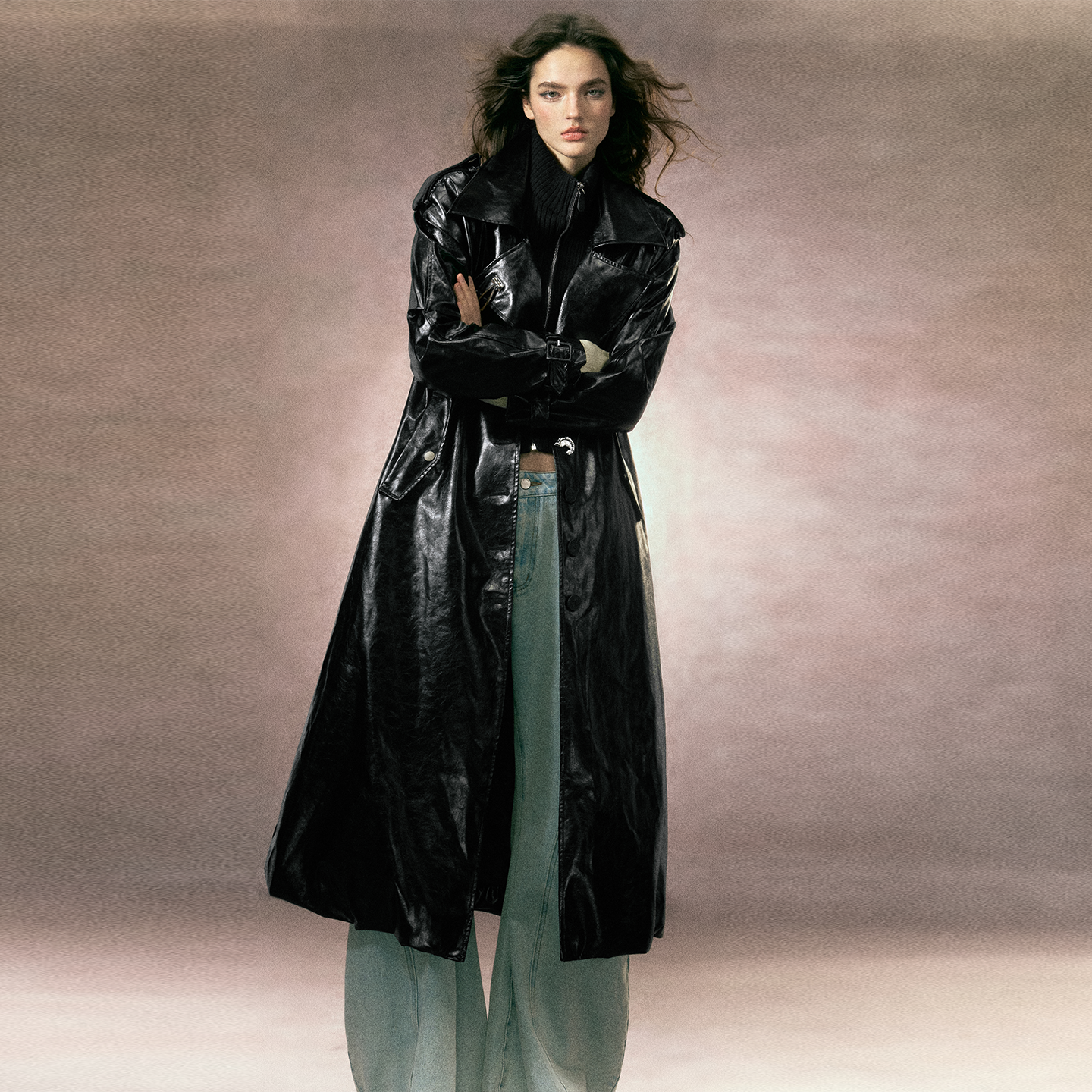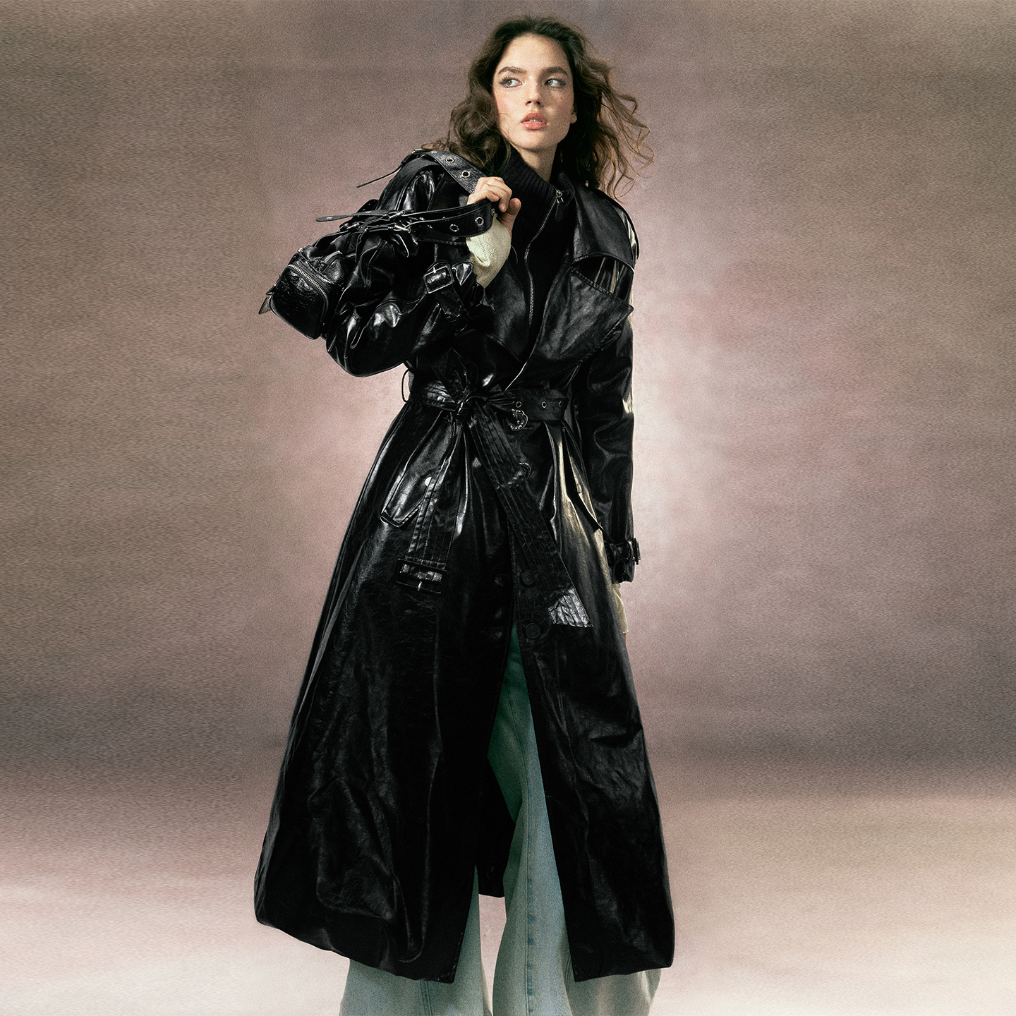 极简廓形感云朵下摆绗棉皮革大衣